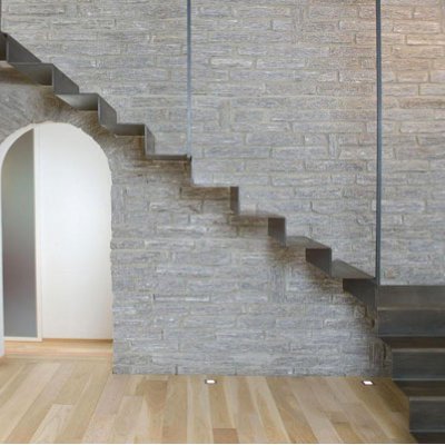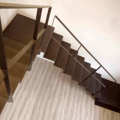 На косоуре из листовой стали от 4 мм с креплением к стене.