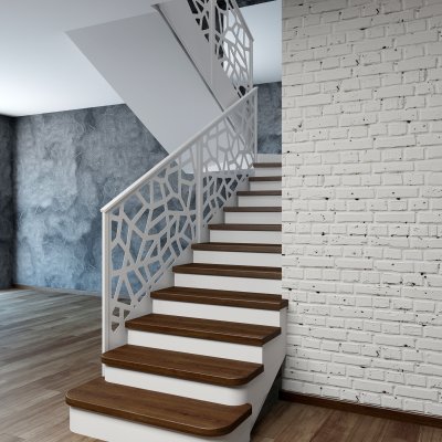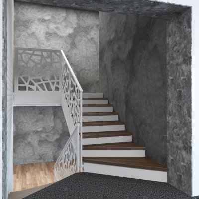 Дубовые ступени в сочитании с изящным ограждением выполненным из листа 5мм (лазер)