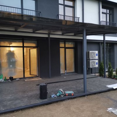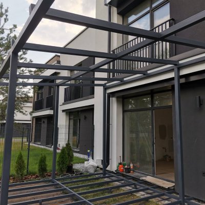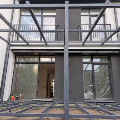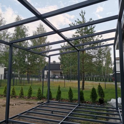 Каркас выполнен из профиля 80х80х3, без привязки к фасаду