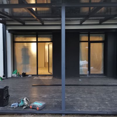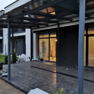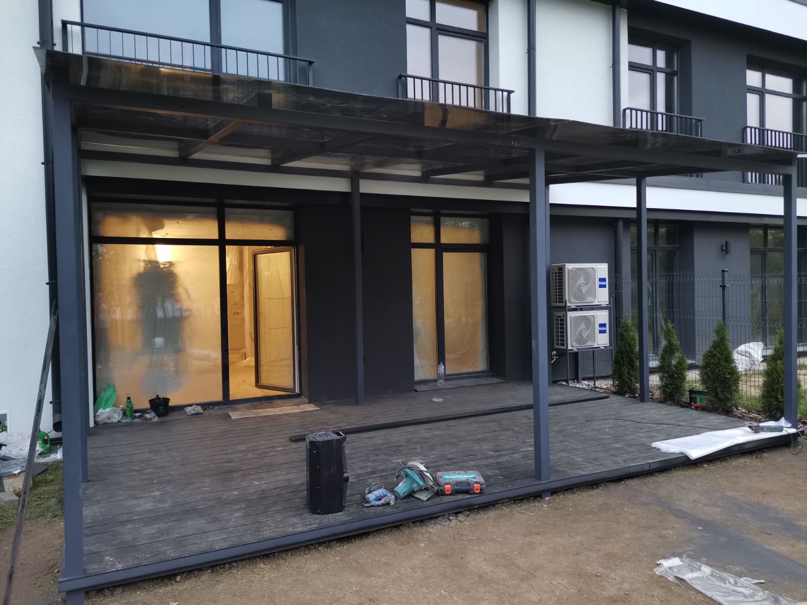 Покрытие пола- ДПК, кровли- монолитный поликарбонат.
